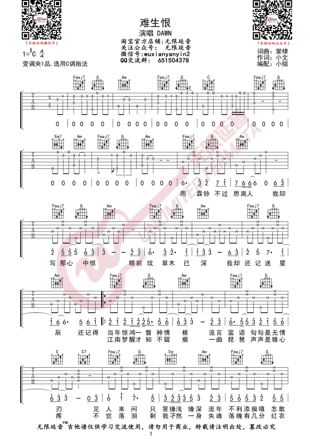 本文标题《难生恨吉他谱_C调_DAWN》,本文网址:https://www.xxz0743.com/jitapu/696876.html
