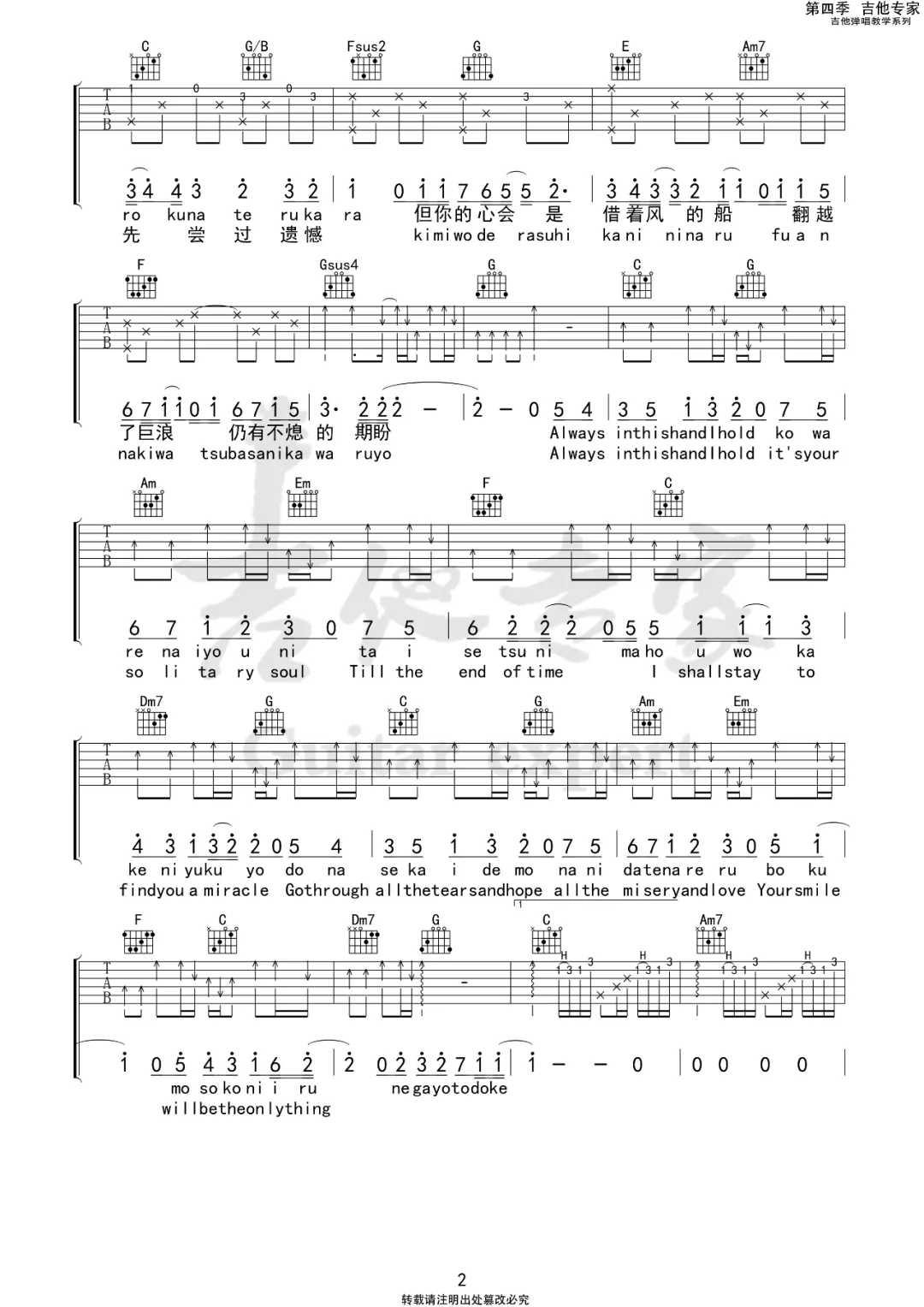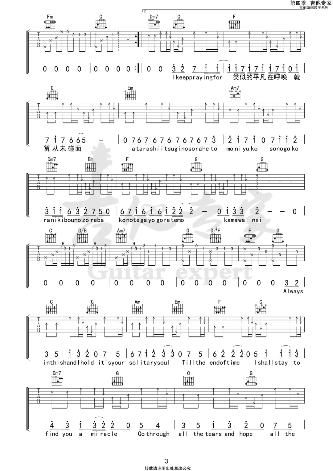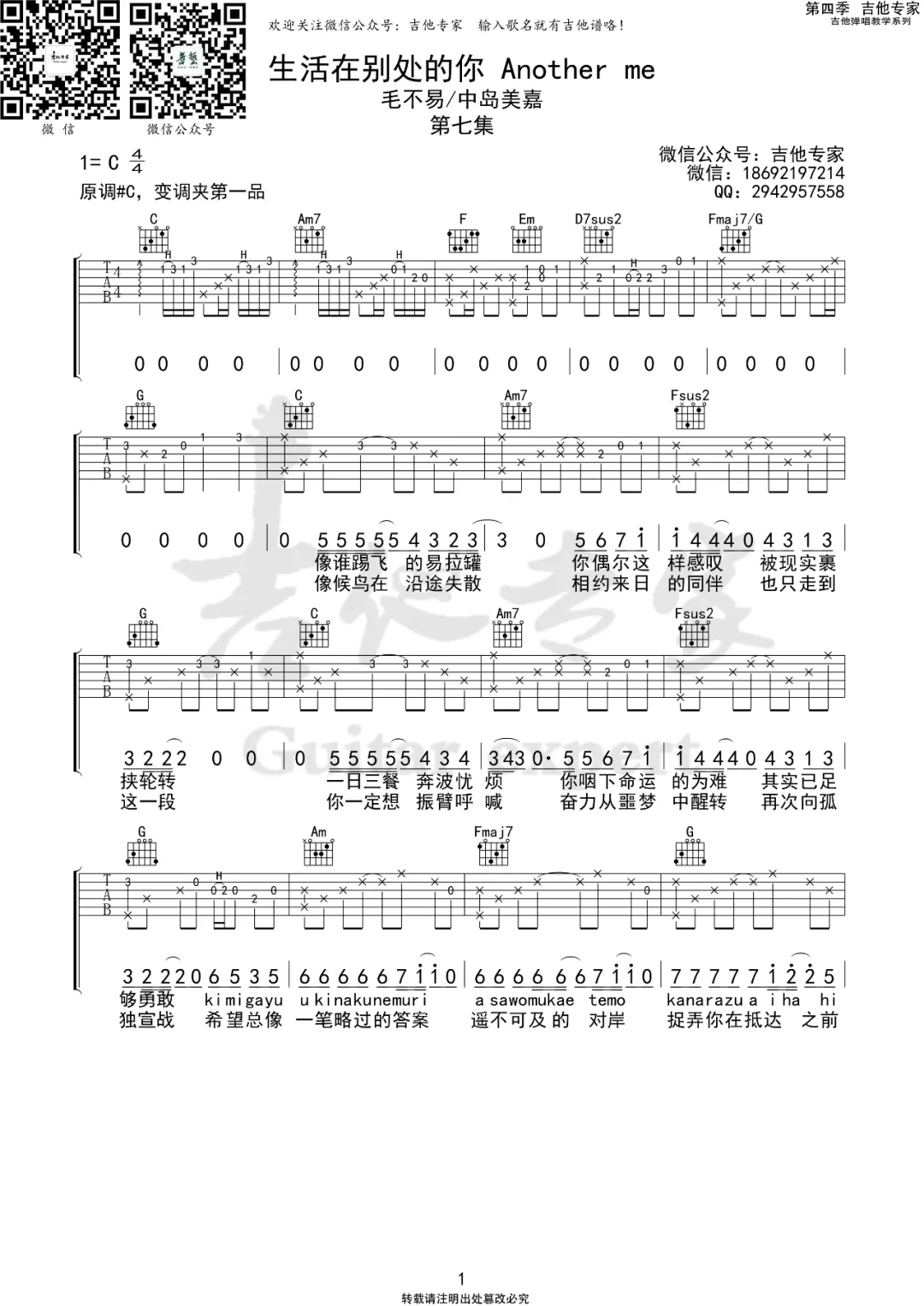 《生活在别处的你》是一首电影的主题曲,它的演奏推荐使用变调夹夹在第3品位。感谢网络琴友对这首歌曲的编配和提供,让我们能够分享这美妙的音乐作品。尽管这首歌曲有点洗脑且俗气,但它的魅力无法抗拒,怎么能够抗拒先一步去聆听呢?我推荐你来尝试弹唱它。