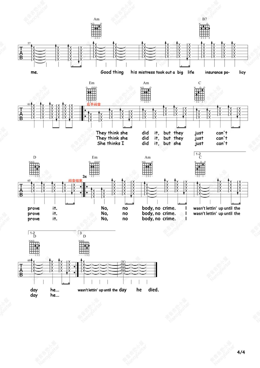 本文标题《No Body No Crime吉他谱_G调_Taylor Swift》,本文网址:https://www.xxz0743.com/jitapu/701826.html
