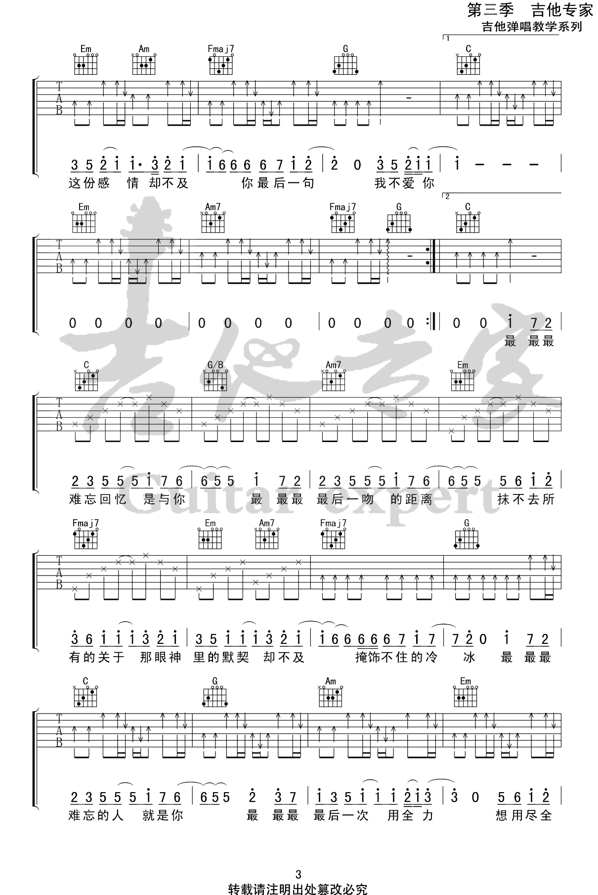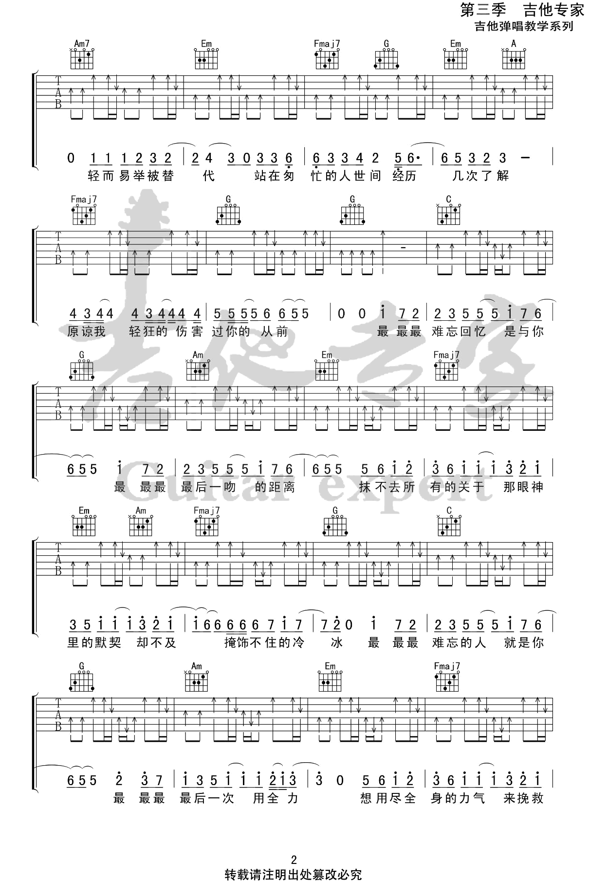 《刘大壮最》是一首近期因在综艺节目中成为热门话题而备受追捧和喜爱的歌曲。这首歌的共谱版本包含吉他弹唱谱,建议使用变调夹4品,速度为85BPM,节奏为4/4拍,难度较简单,易于上手。无论是歌曲本身还是刘大壮的表演,都获得了广大观众的热烈反响。这首歌曲的流行不仅因为综艺节目的推动,更因其旋律和歌词引发了人们共鸣。它展现了现实生活中的真实情感和经历,让人们产生共鸣和感受到情感的共通性。快来一起弹唱这首歌曲,享受其中蕴含的情感与音乐的美妙吧!