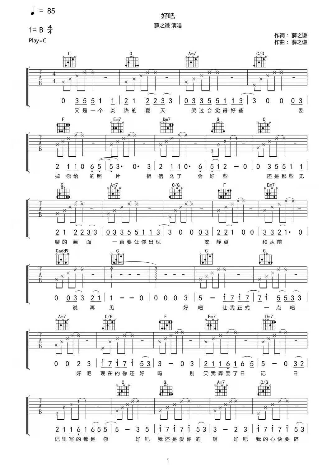 本文标题《好吧吉他谱_C调_薛之谦》,本文网址:https://www.xxz0743.com/jitapu/709107.html