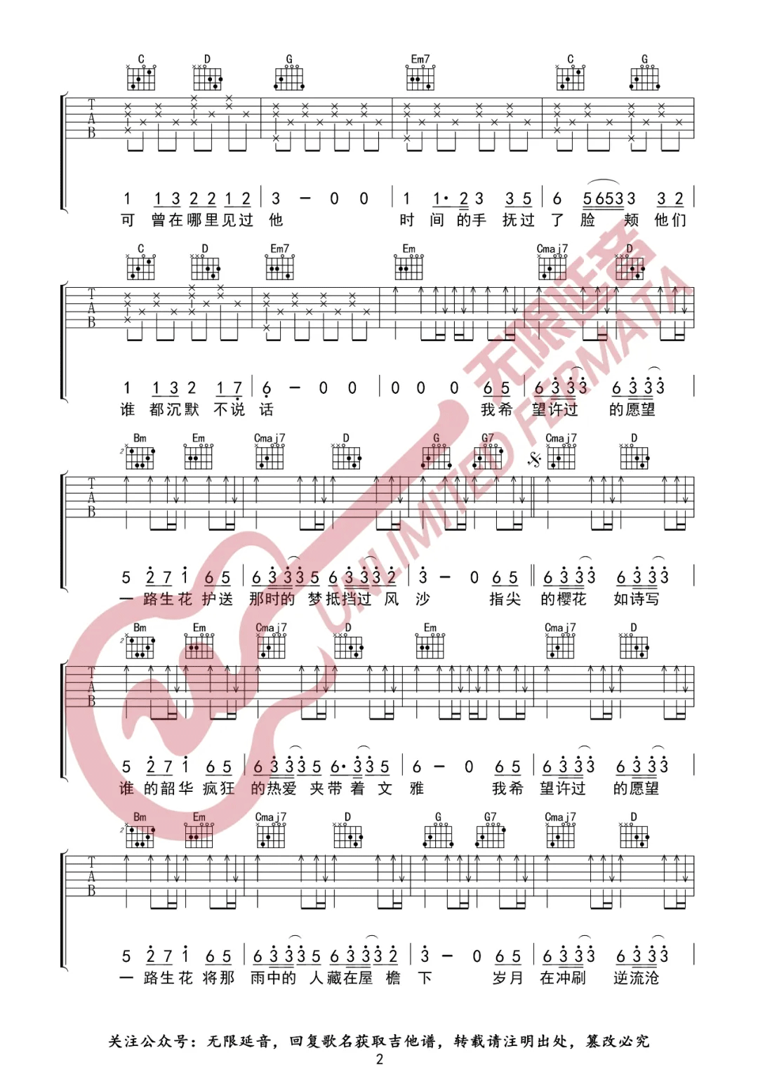 一路生花吉他谱_G调_温奕心
