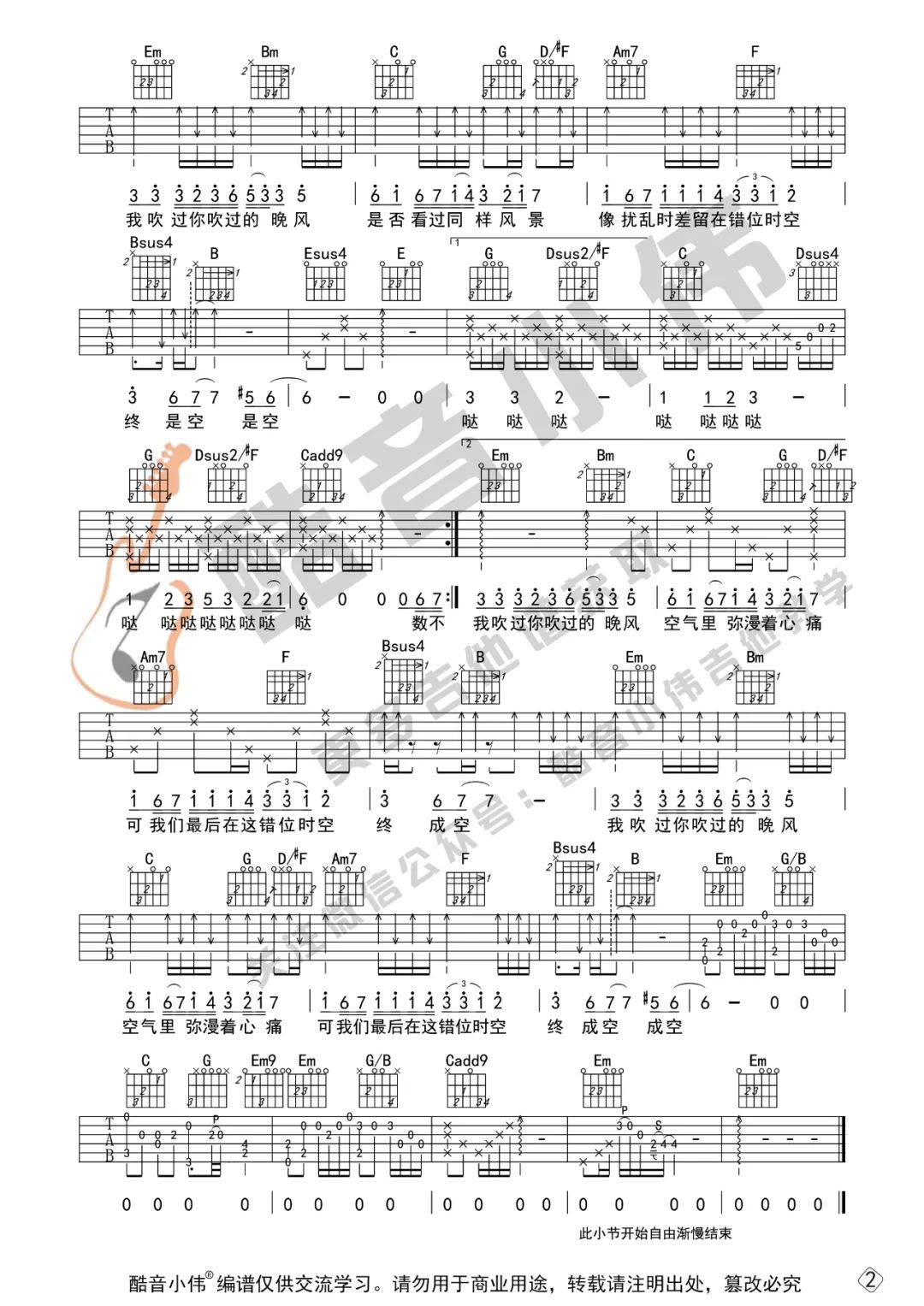 《错位时空》是一首E调的歌曲,变调夹夹在第三品上进行弹唱,这个版本非常动听。它非常适合新手进行练习,旋律和节奏都很简单,后面的扫弦节奏也是最基础的一种。这首歌曲的演奏不仅能够让你享受音乐的美妙,同时也是学习吉他的绝佳选择。通过弹唱《错位时空》,你可以培养自己的音感和节奏感,逐渐掌握吉他的基本技巧。不论是初学者还是有一定经验的吉他手,都可以通过这首歌曲提升自己的演奏水平。无论是在休闲时间自娱自乐,还是与朋友分享音乐乐趣,弹唱《错位时空》都能给你带来愉悦和成就感。让我们一起享受这美妙的旋律,用音乐穿越时空的错位,感受吉他带给我们的乐趣和灵感。