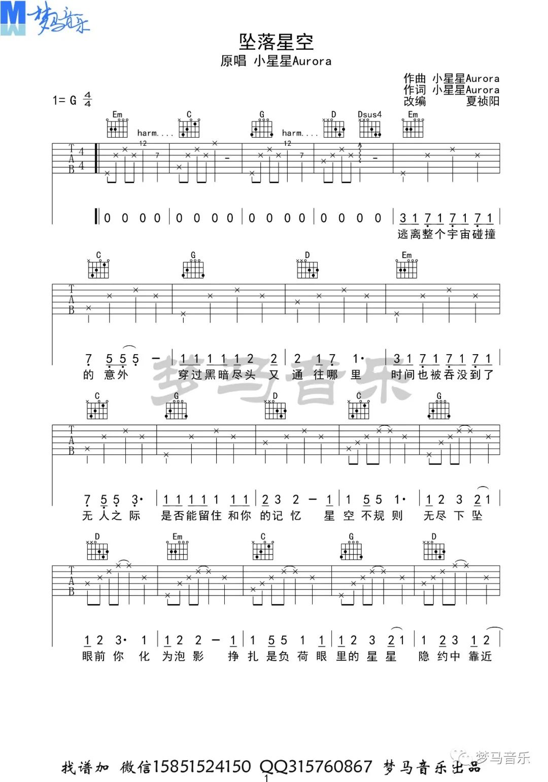本文标题《坠落星空吉他谱_G调_小星星Aurora》,本文网址:https://www.xxz0743.com/jitapu/711825.html