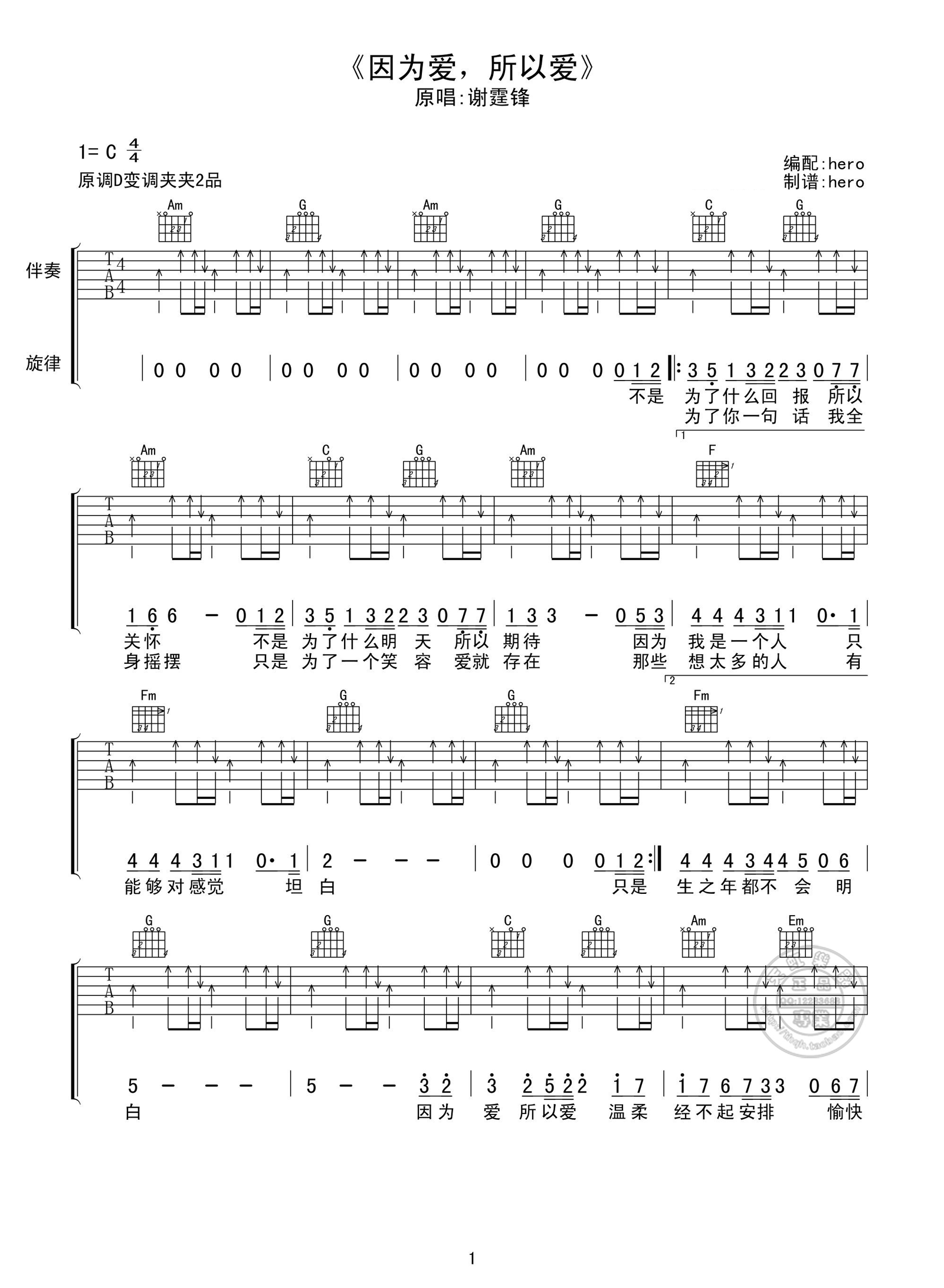 本文标题《因为爱所以爱吉他谱_C调_谢霆锋》,本文网址:https://www.xxz0743.com/jitapu/717432.html