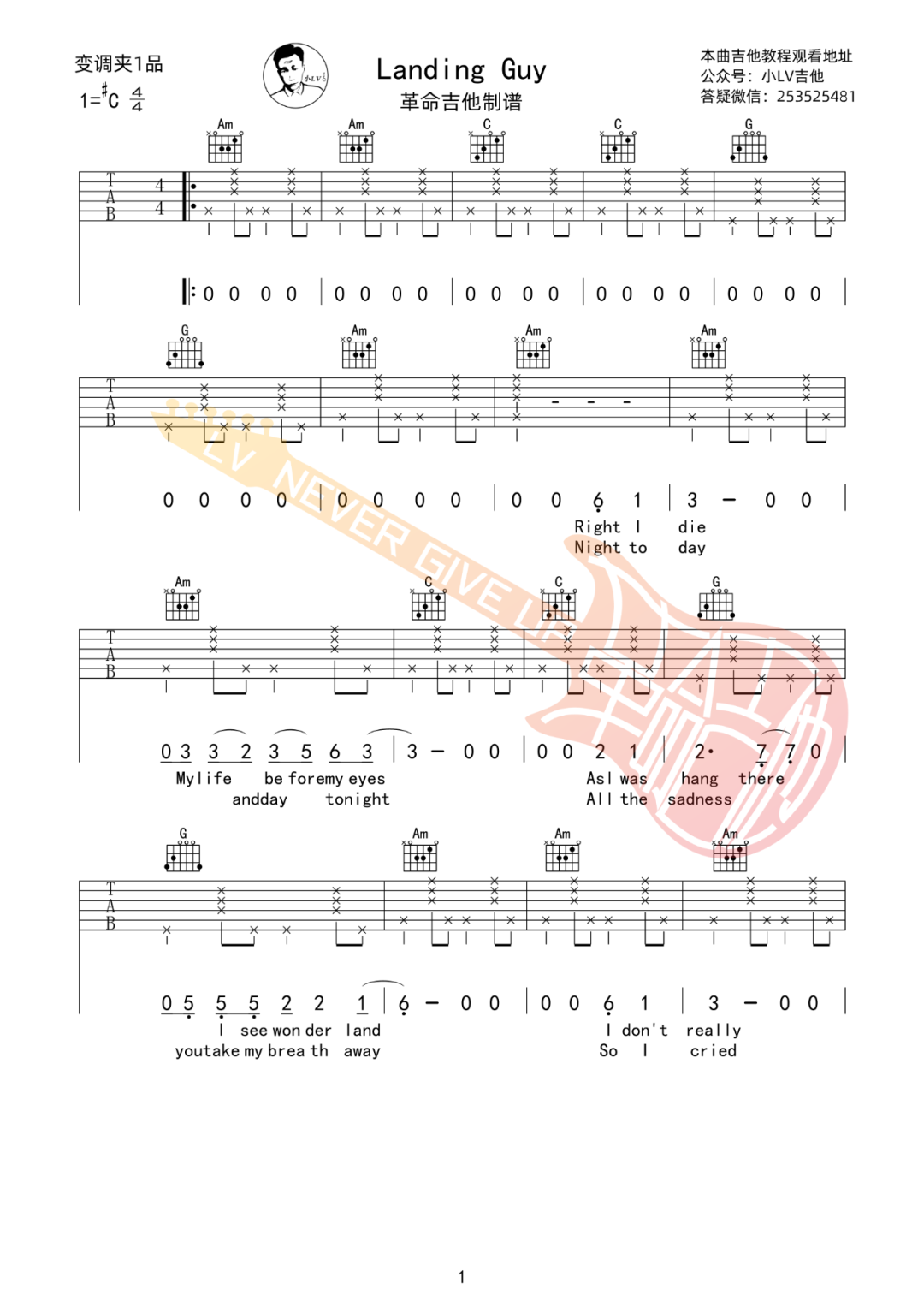 本文标题《Landing Guy吉他谱_C调_刘昊霖》,本文网址:https://www.xxz0743.com/jitapu/717982.html