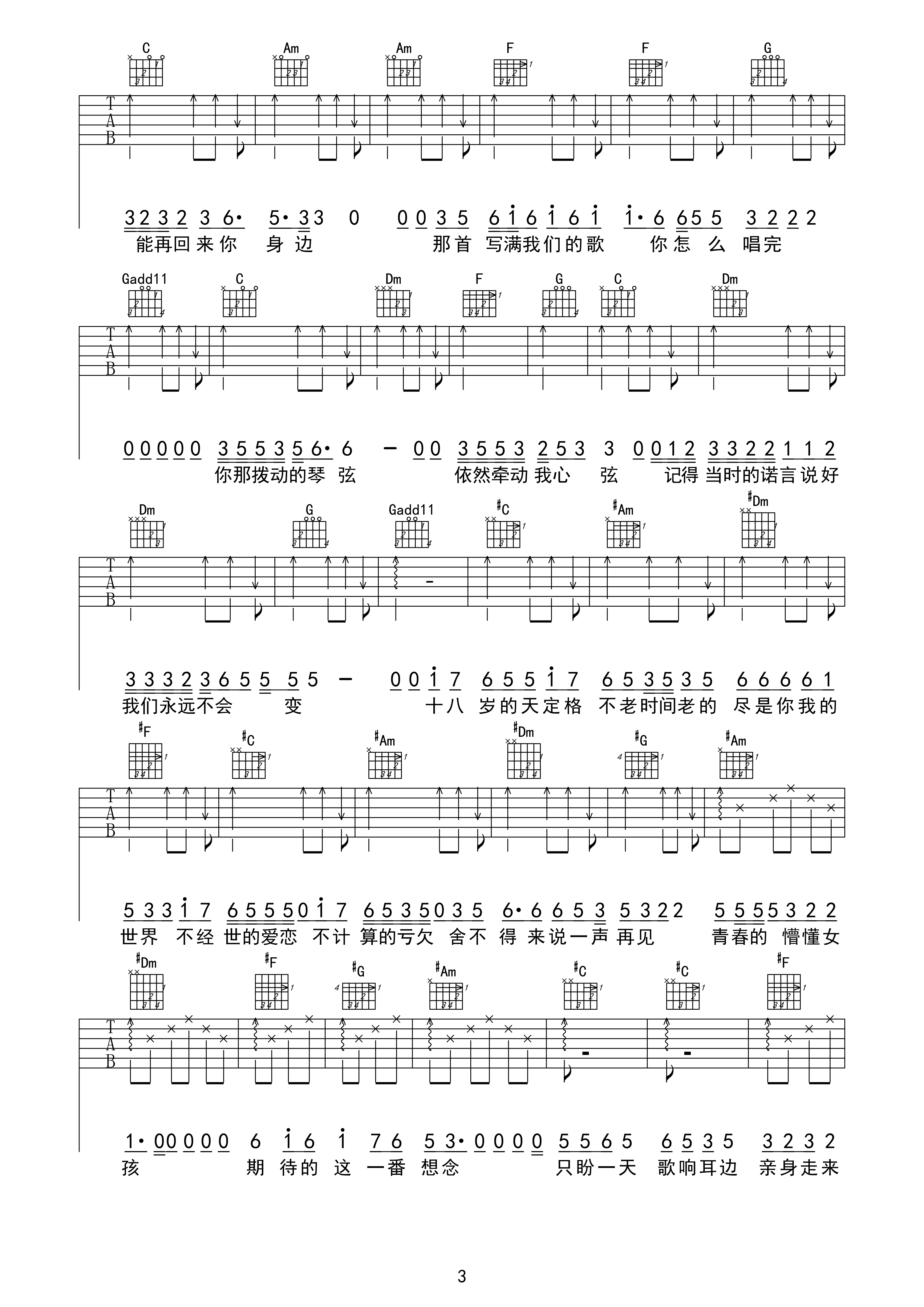 《初恋未满》是一首经典老歌,这个版本的曲谱相对简单,变调夹夹在第三品,整体难度不大。曲谱中使用了4个常用的和弦,以扫弦节奏为主,和弦变化也比较多。喜欢这首歌的朋友们可以尝试弹奏一下,相信会带给你们愉悦的音乐体验。《初恋未满》是一首充满回忆和情感的歌曲,它让人们回想起那段未满的初恋时光,带着青涩和美好的回忆。无论是曲调还是歌词,都能勾起人们心中那份初恋的情感,让人不由自主地沉浸其中。这首歌的简单曲谱让更多人能够轻松弹唱,希望大家能够通过音乐重新感受到初恋的美好和纯真。赶紧拿起吉他,尝试弹奏《初恋未满》,让音乐带你回到那段青涩而美好的时光。